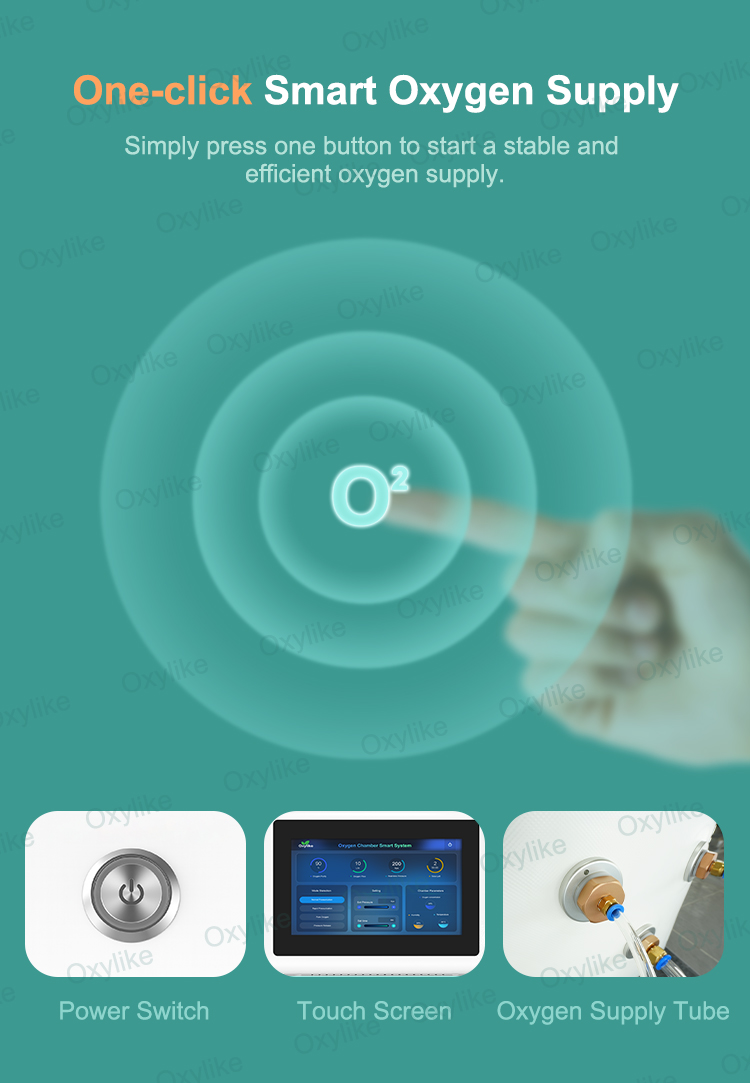 4.Two outlets: oxygen and air outlets, providing the O2&Air source for chamber.