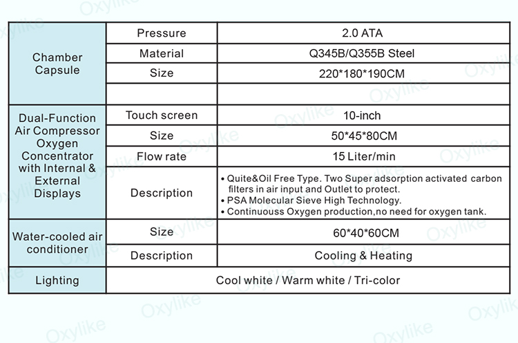 4.Oxygen chamber: high-tech material chamber precision Stainless Steel material, Strong and durable.