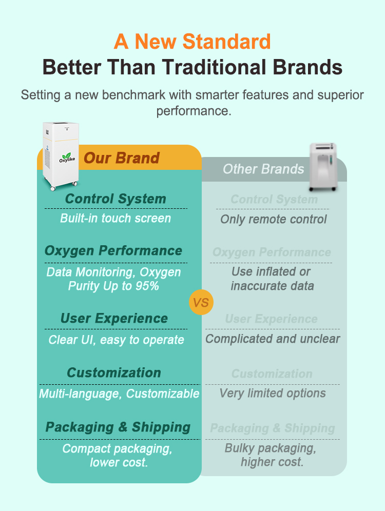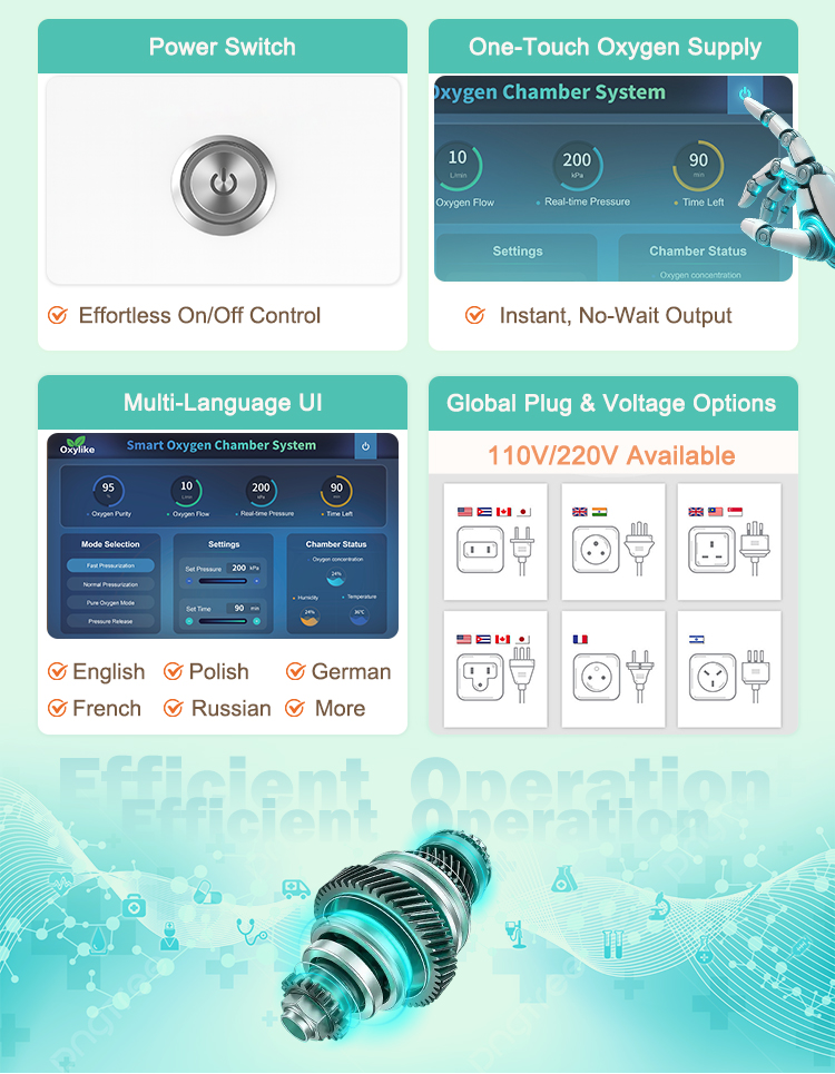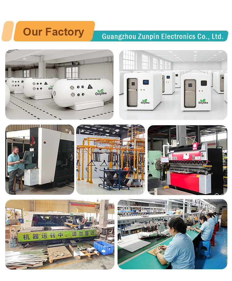 2.10L oxygen flow oxygen concentrator and air compressor two in one machine with in-chamber touch screen panel.