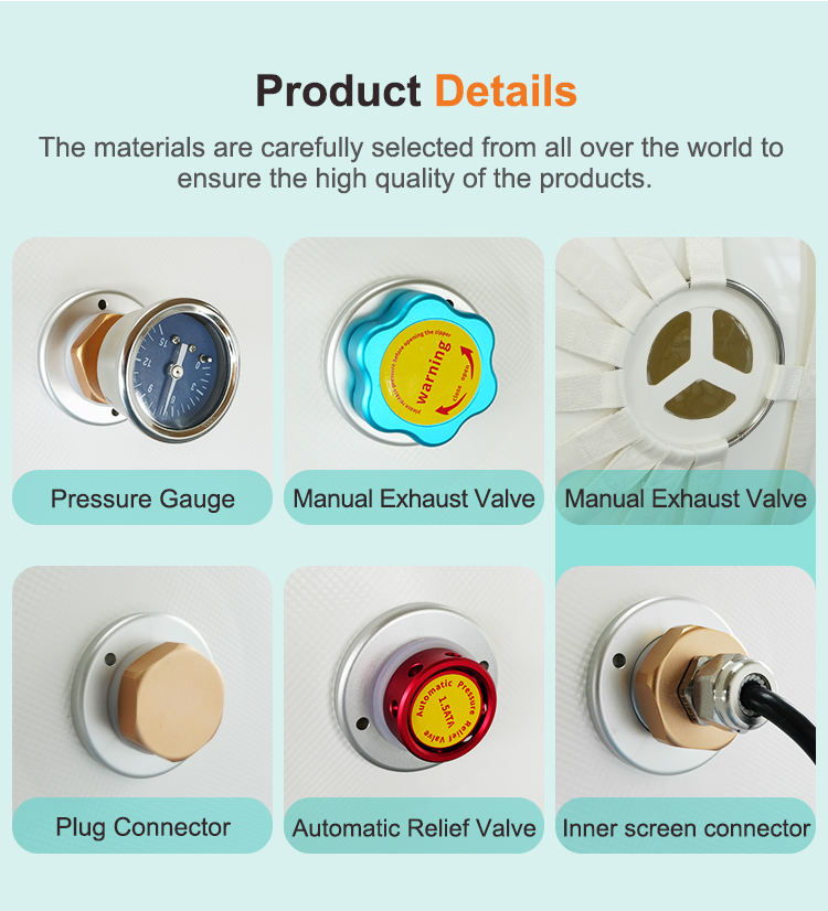 6.Safety valve of chamber: to prevent harm for people in sleep in case of power failure suddenly.